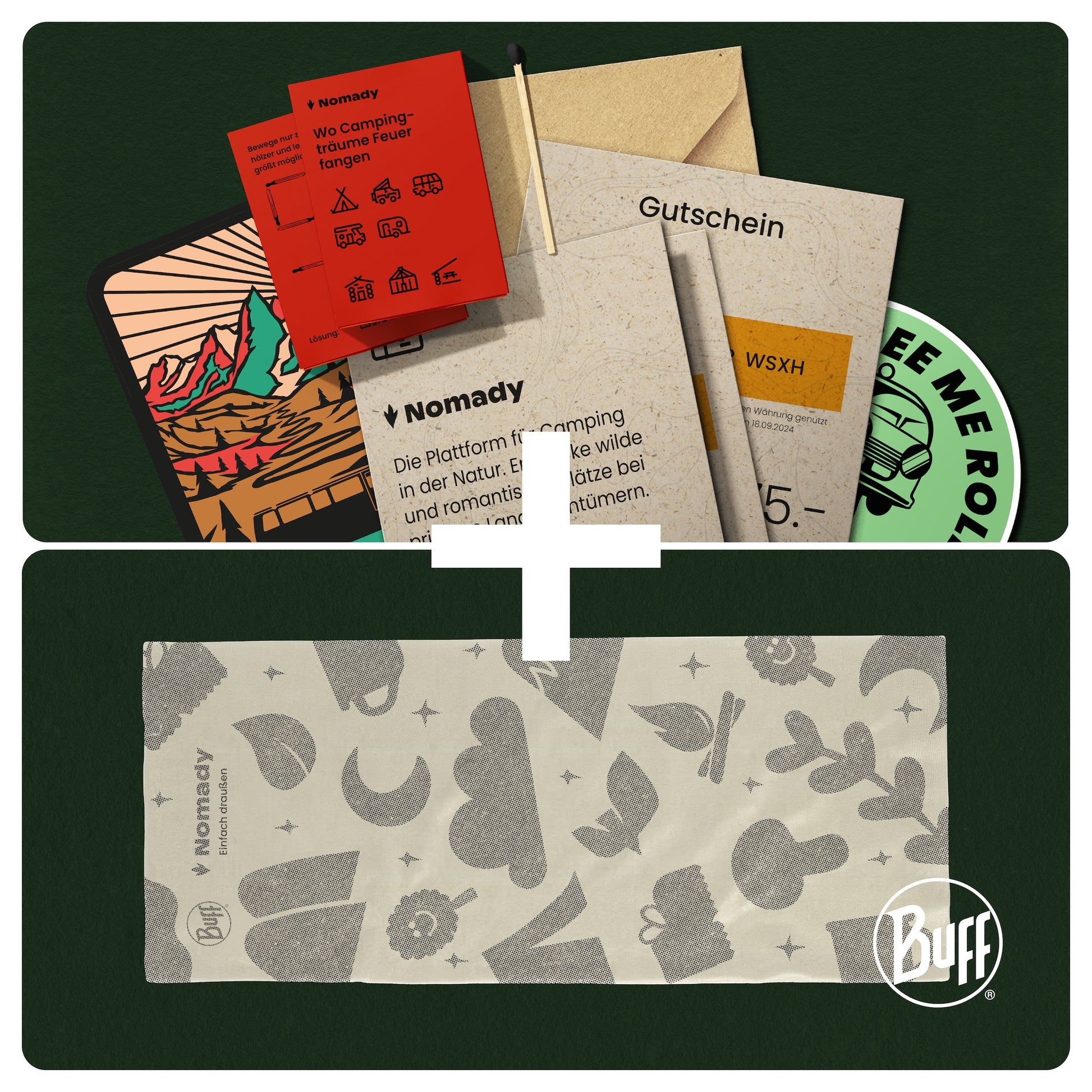 - 1× Nomady Buff – das nachhaltige Multifunktionstuch für unterwegs
